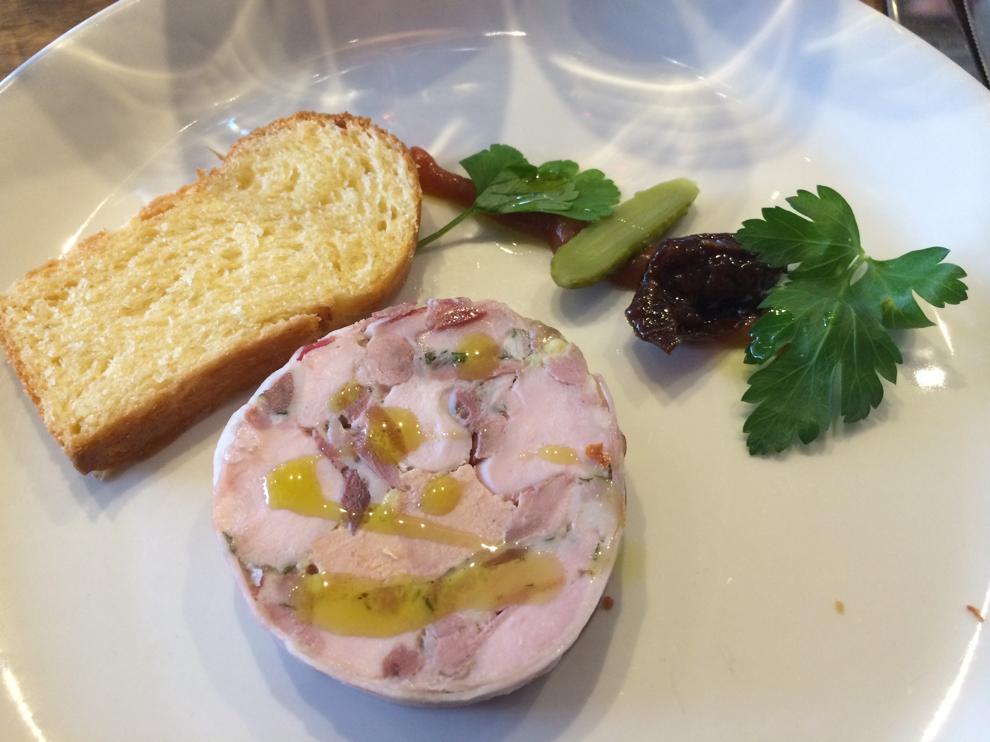 Terrine of guinea fowl and foie gras with quince chutney; Bress Wine, Cider and Produce New Release Wine Lunch 2014 – Plough Hotel, Footscray
